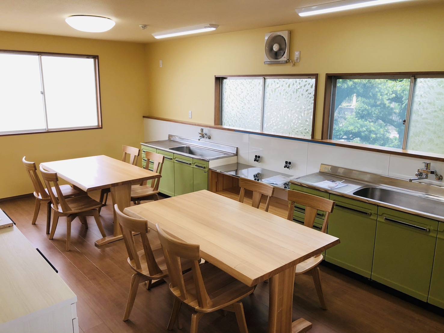 元々保育園だった施設を改修しているので、部屋以外に大きなホールがあり、洗濯物を干したり体を動かすことができます。