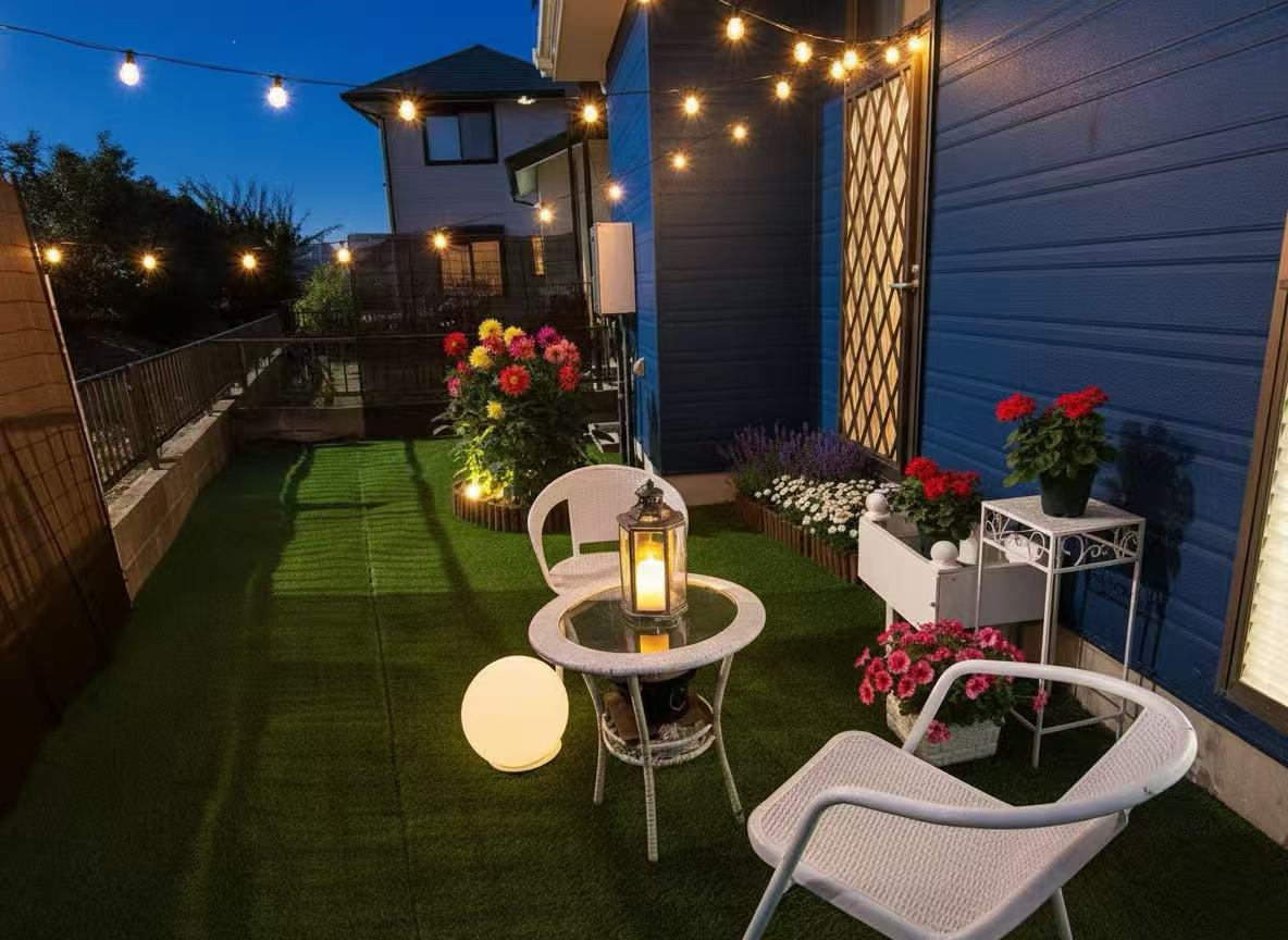 庭では、風にそよぐ花々に囲まれてみんなでBBQ。